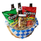 Caja de madera con 16 rosas, 3 cervezas, botanas, cacahuetes y tamarindos